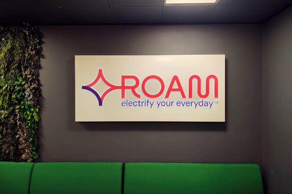- Illuminated Reception Signage: A striking LED-illuminated sign featuring Roam’s new logo was installed in the reception area, providing a strong first impression for visitors and employees alike.